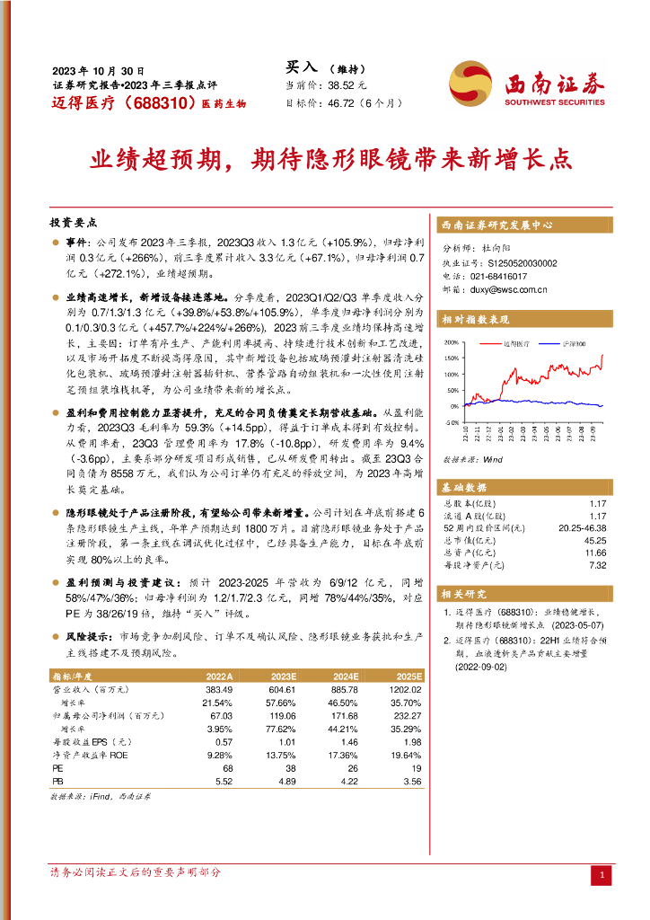 西南证券:迈得医疗(688310)-2023年三季报点评:业绩超预期,期待隐形眼镜带来新增长点.pdf