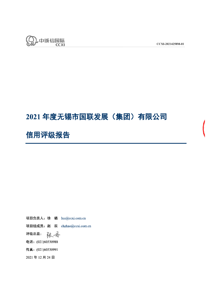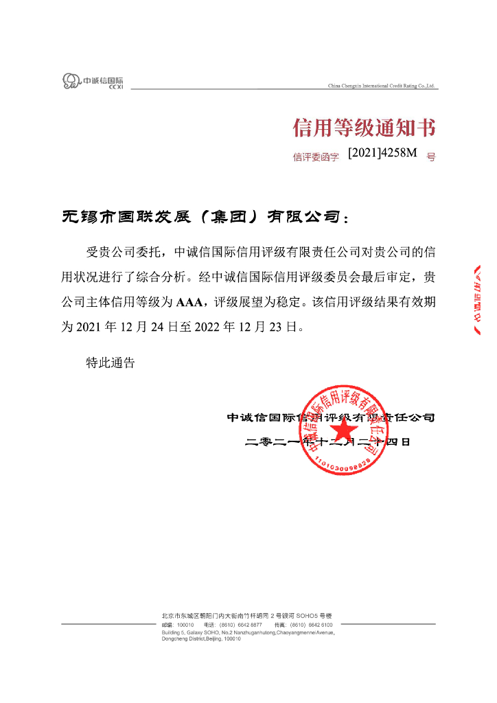 中诚信:无锡市国联发展(集团)有限公司主体信用评级报告及跟踪评级安排.pdf