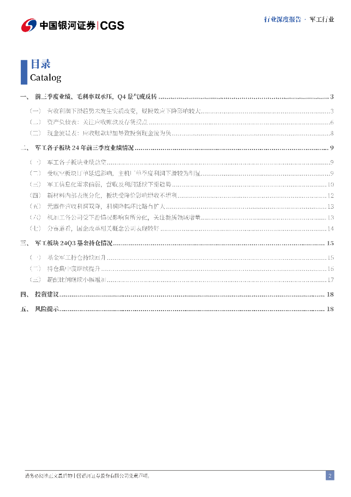 中国银河:2024Q3国防军工板块业绩及基金持仓报告:营收利润双承压,“十四五”末待花开.pdf