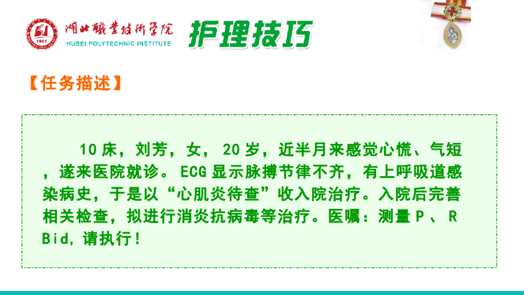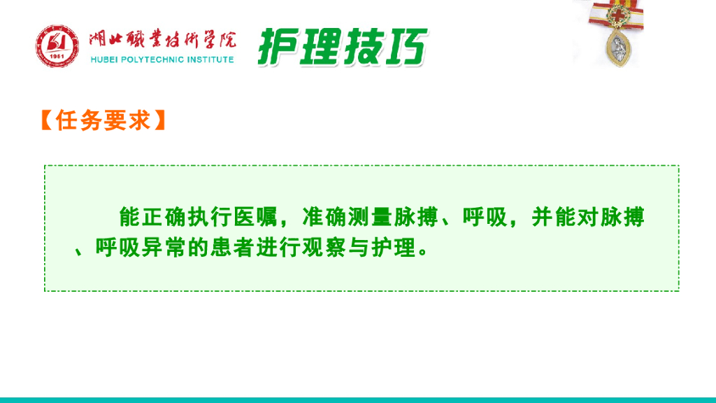 《护理技巧》演示文稿-子任务二 脉搏、呼吸的观察及护理.pdf