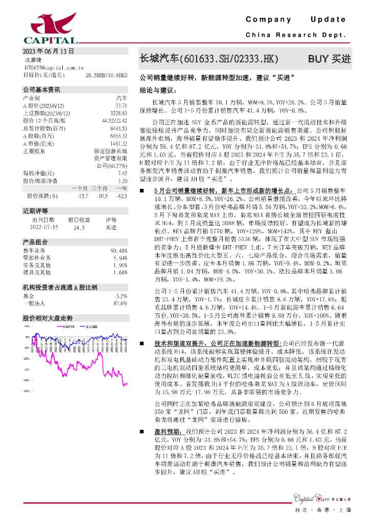群益证券:长城汽车(601633)-公司销量继续好转,新能源转型加速,建议“买进”.pdf