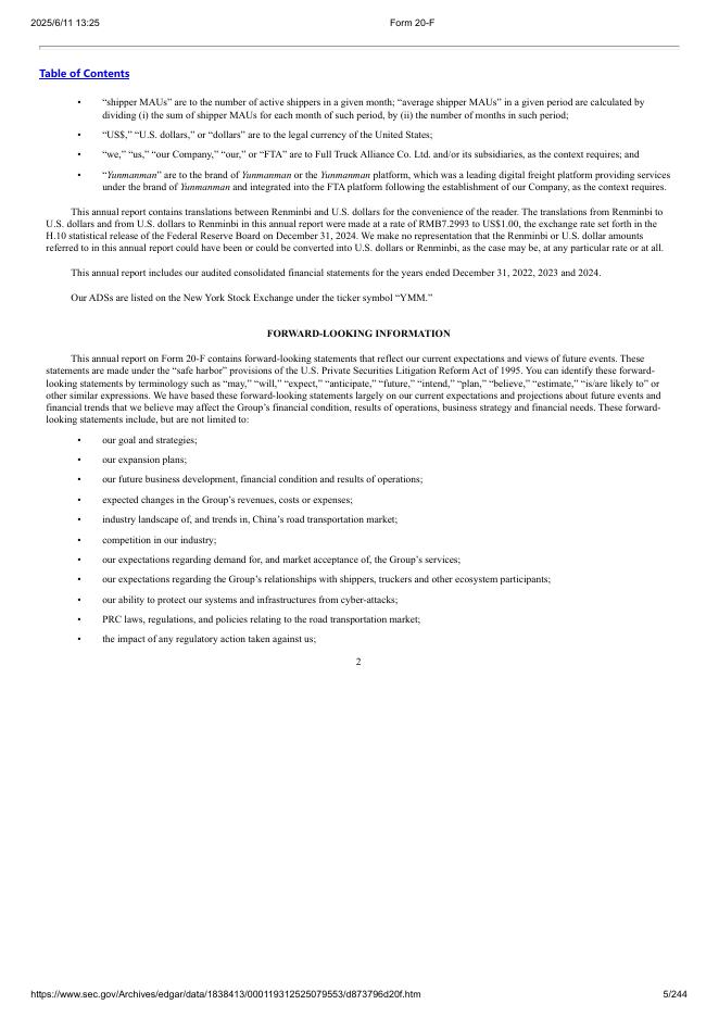 满帮集团(YMM)2024年20-F年度报告(英文版).pdf