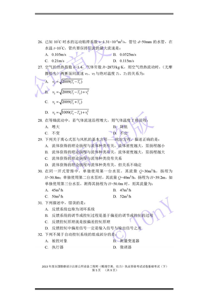 2013年注册公用设备工程师暖通动力基础考试真题(下午).pdf