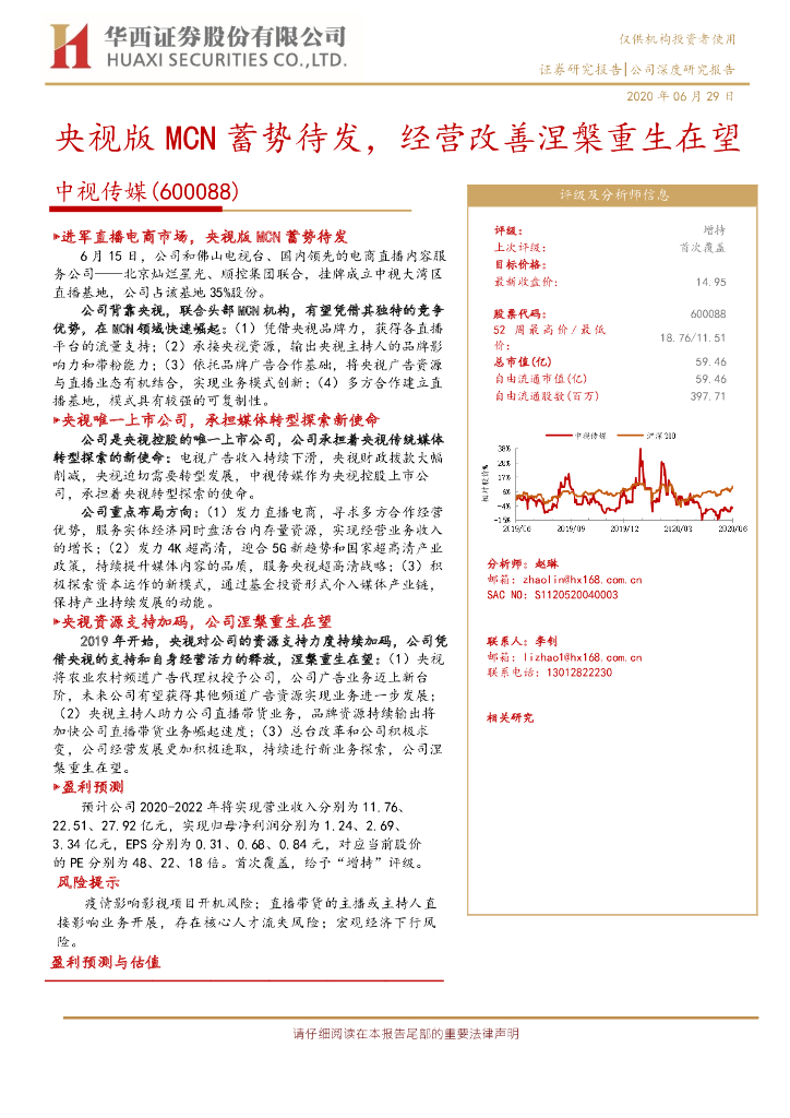 华西证券:中视传媒(600088)-央视版MCN蓄势待发,经营改善涅槃重生在望.pdf