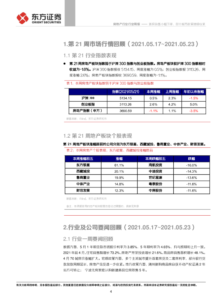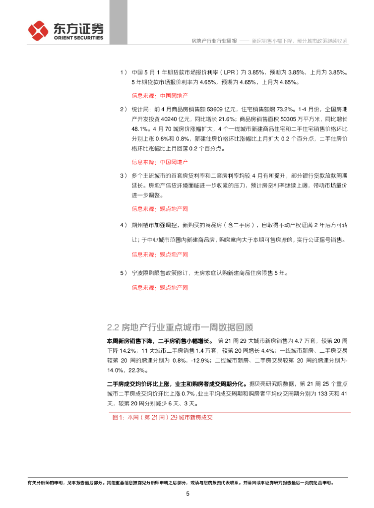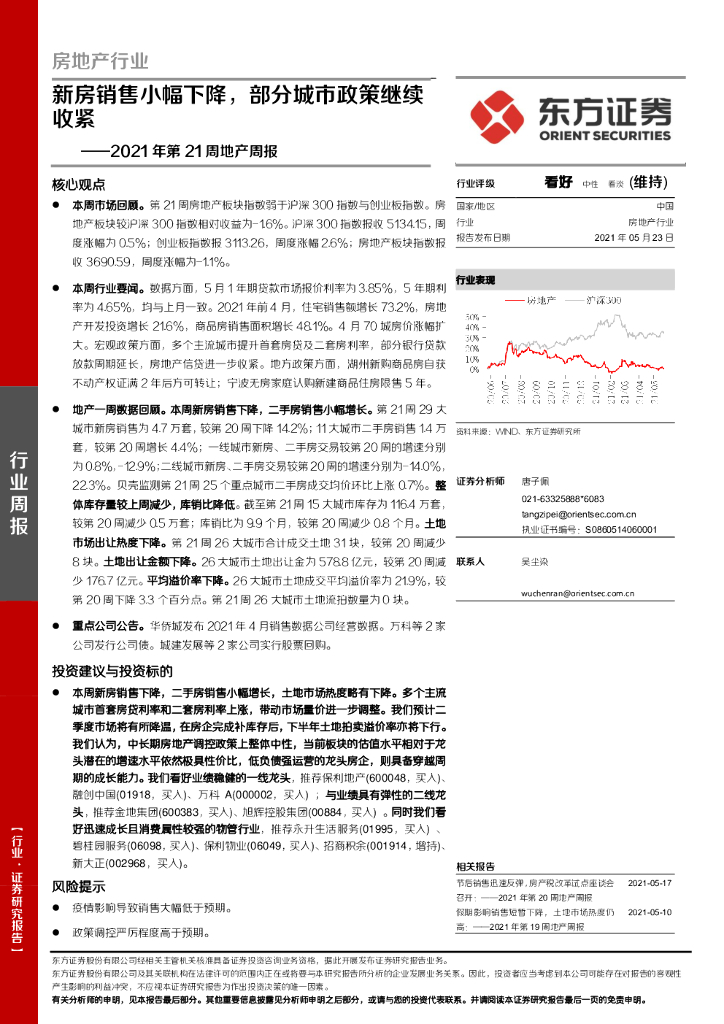 东方证券:2021年第21周地产周报:新房销售小幅下降,部分城市政策继续收紧.pdf