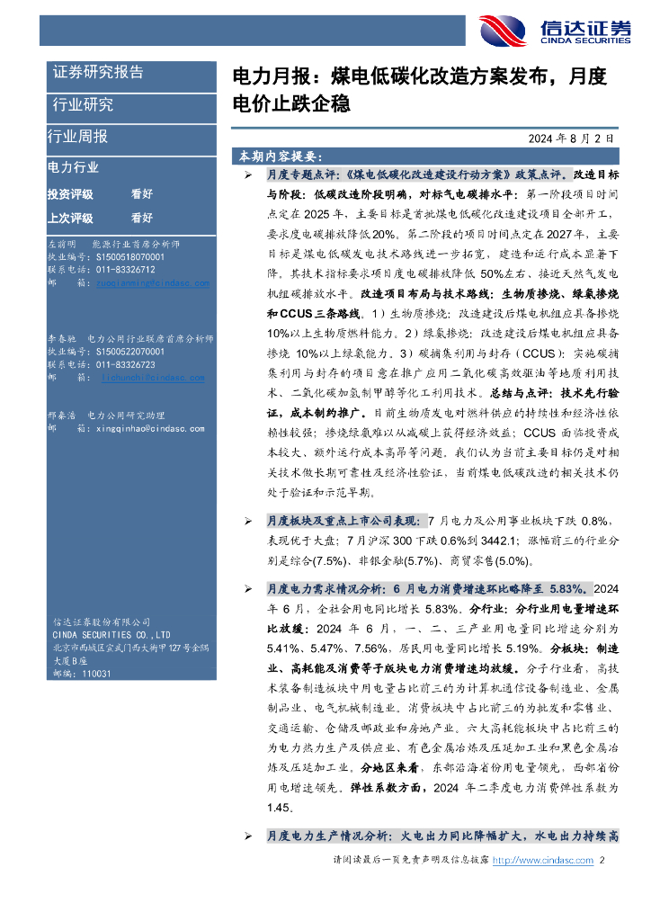 信达证券:煤电低碳化改造方案发布,月度电价止跌企稳—电力行业6月月报.pdf