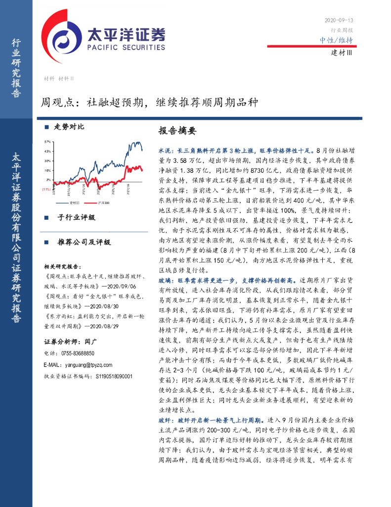 太平洋证券:建材Ⅲ周观点:社融超预期,继续推荐顺周期品种.pdf