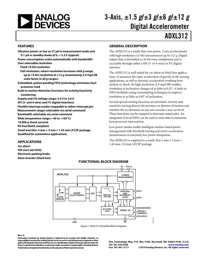 ANALOG DEVICES ADXL312 英文产品数据手册.pdf