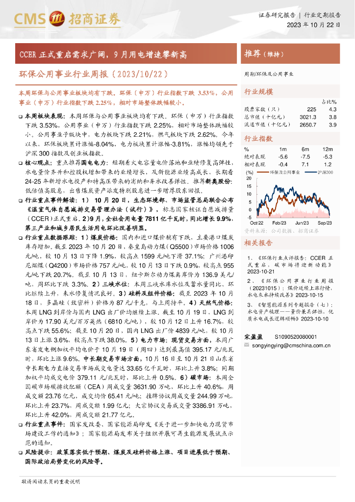 招商证券:CCER正式重启需求广阔,9月用电增速攀新高.pdf