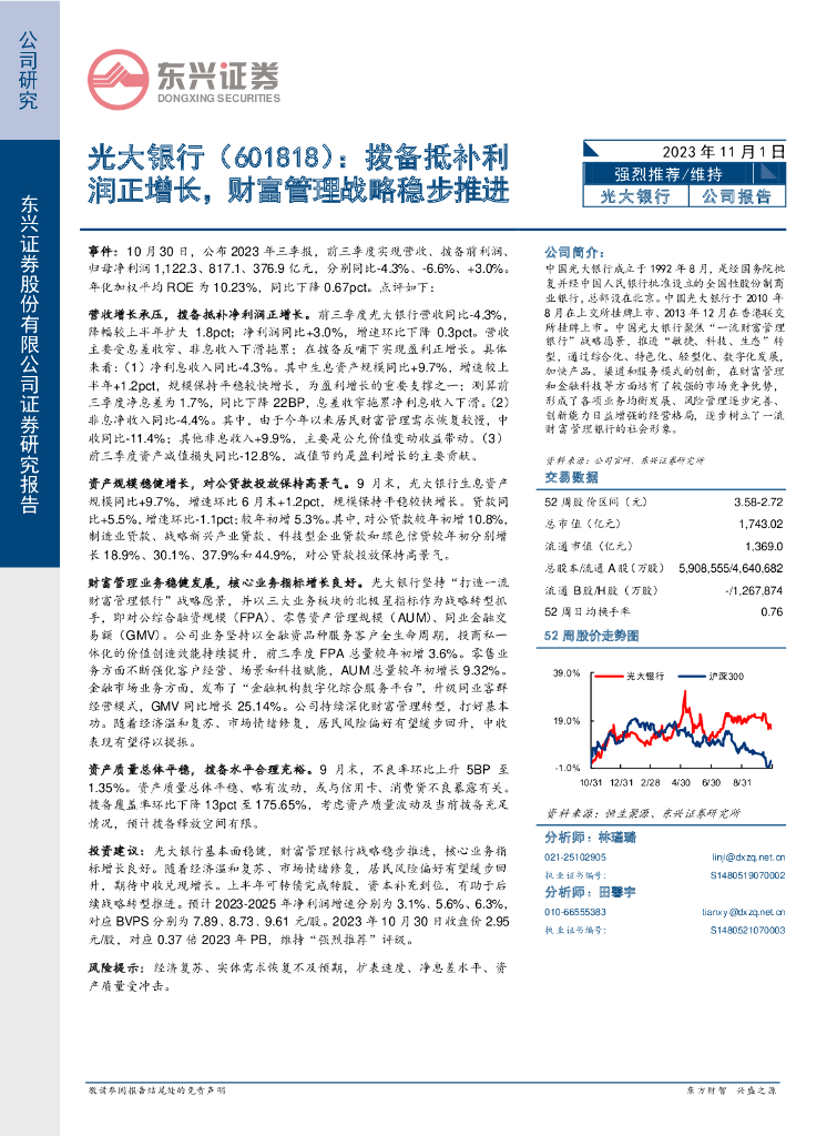 东兴证券:光大银行(601818)-拨备抵补利润正增长,财富管理战略稳步推进.pdf