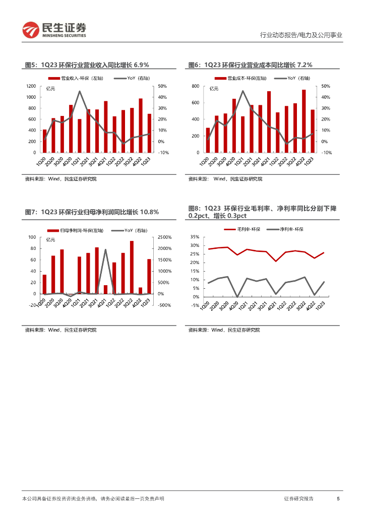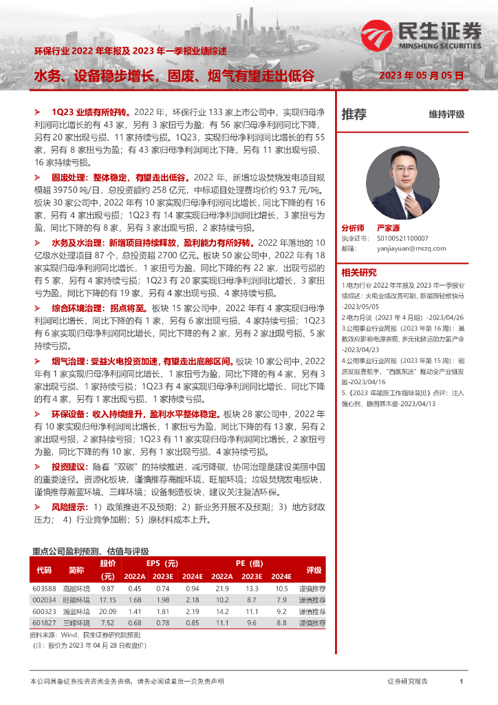 民生证券:环保行业2022年年报及2023年一季报业绩综述:水务、设备稳步增长,固废、烟气有望走出低谷.pdf