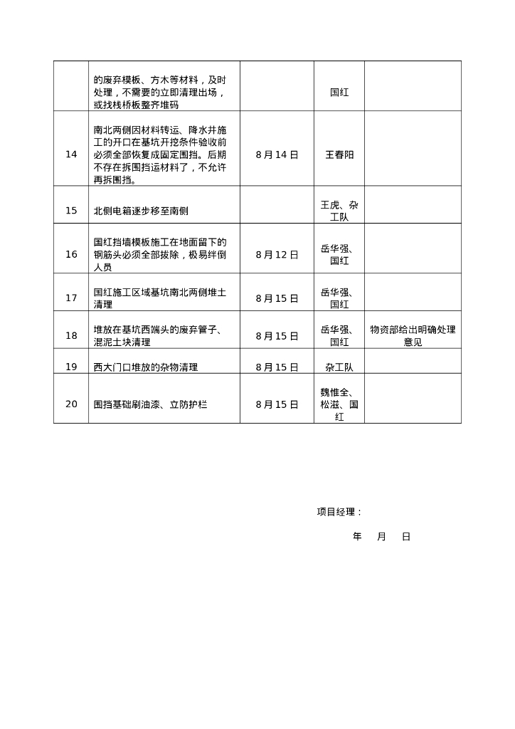 基坑开挖条件验收安全文明施工任务表.doc