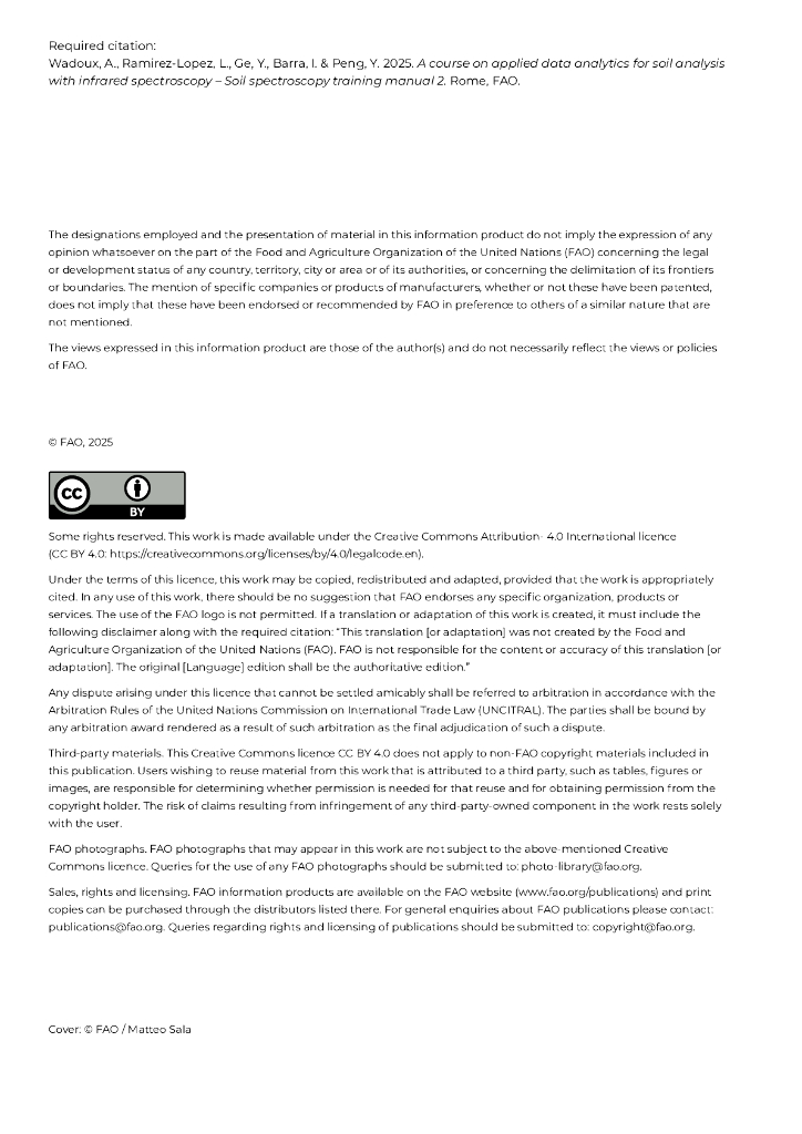 FAO联合国粮农组织:2025年红外光谱法进行土壤分析的应用数据分析课程-土壤光谱训练手册2(英文版).pdf