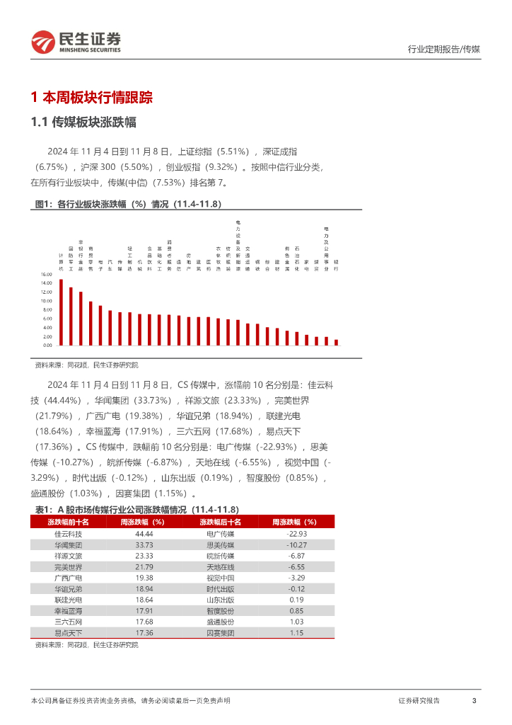 国金证券:传媒互联网产业行业研究:边走边看,等待机会