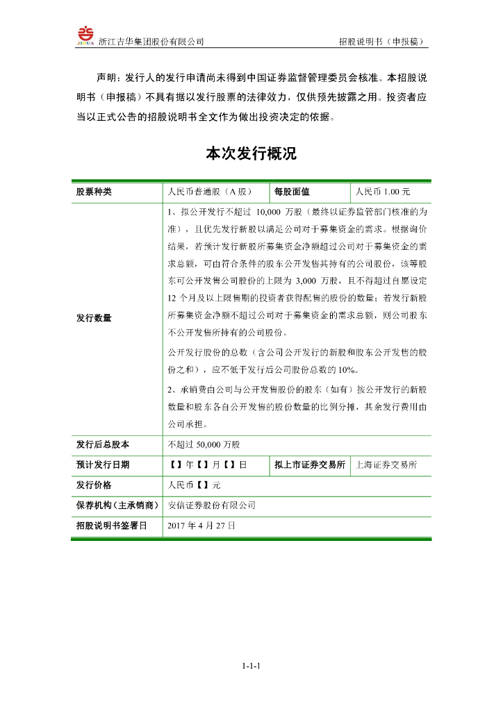 浙江吉华集团股份有限公司上交所主板IPO上市招股说明书.pdf