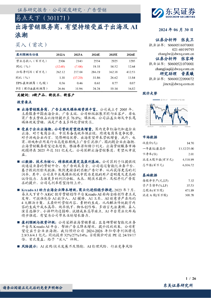 东吴证券:易点天下(301171)-出海营销服务商,有望持续受益于出海及AI浪潮.pdf