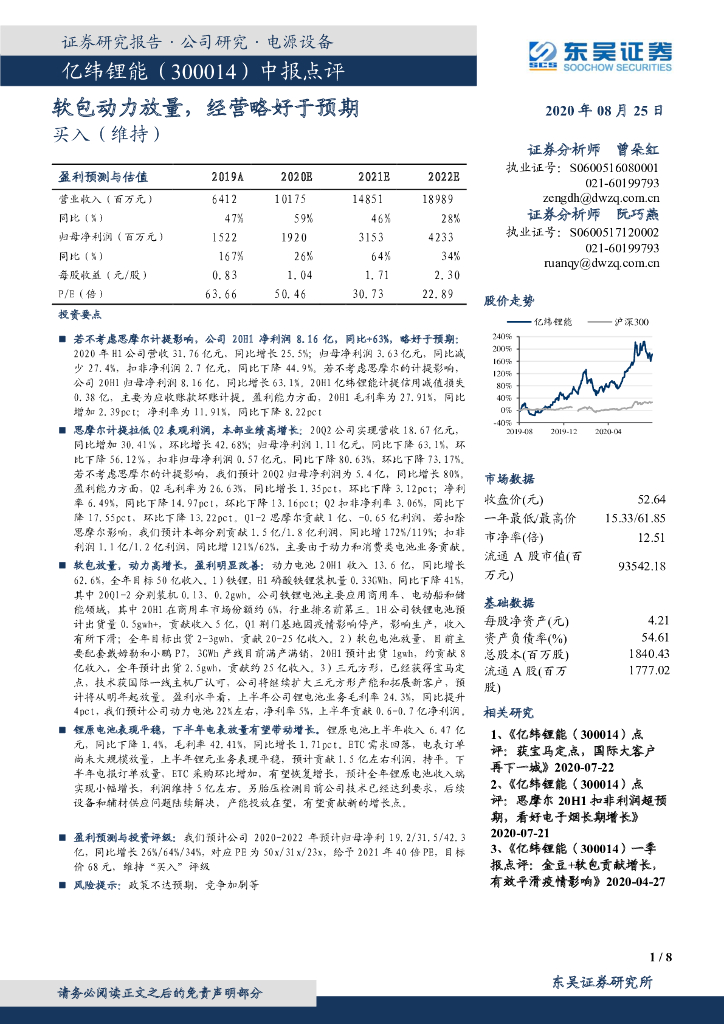 东吴证券:亿纬锂能(300014)-中报点评:软包动力放量,经营略好于预期.pdf