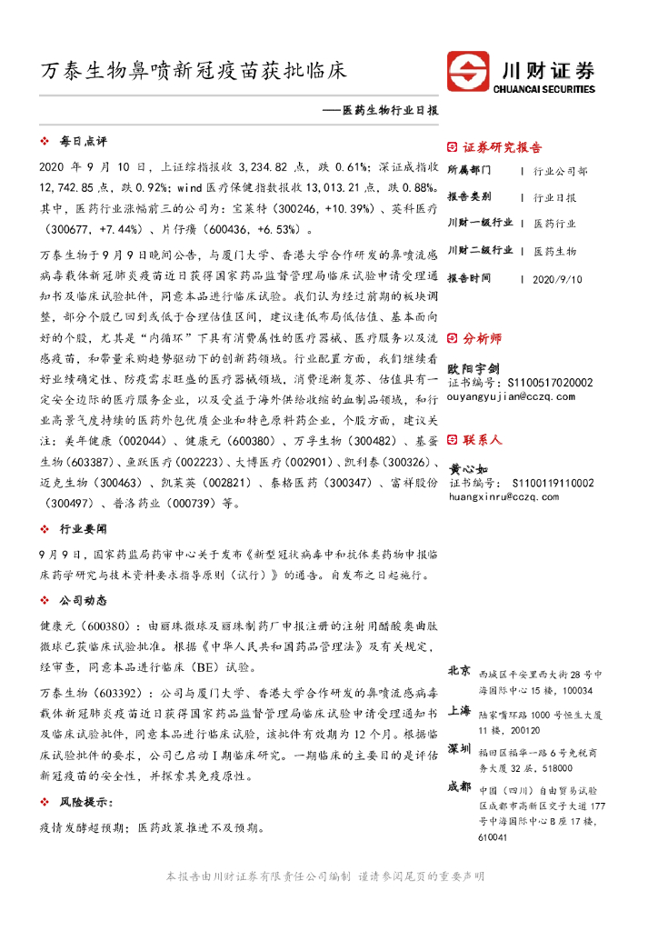 川财证券:医药生物行业日报:万泰生物鼻喷新冠疫苗获批临床.pdf