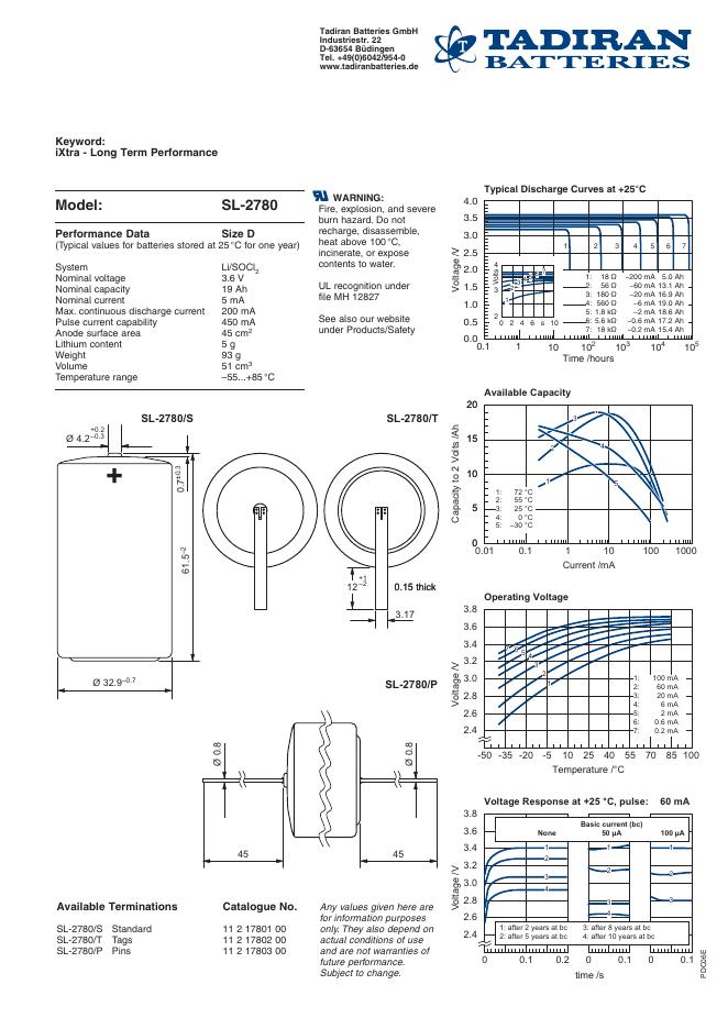 TADIRAN BATTERIES SL-2780 数据手册.pdf