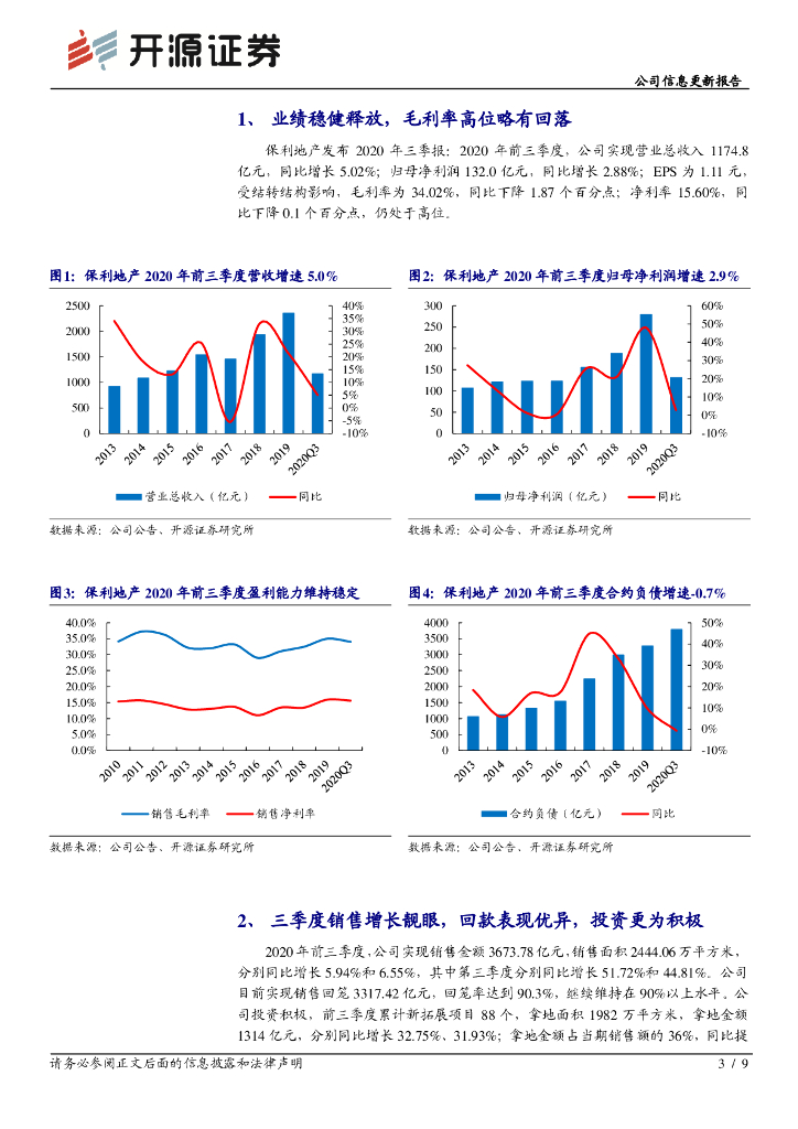 开源证券:保利地产(600048)-公司信息更新报告:业绩稳健,销售提速,投资积极,杠杆有所回落.pdf