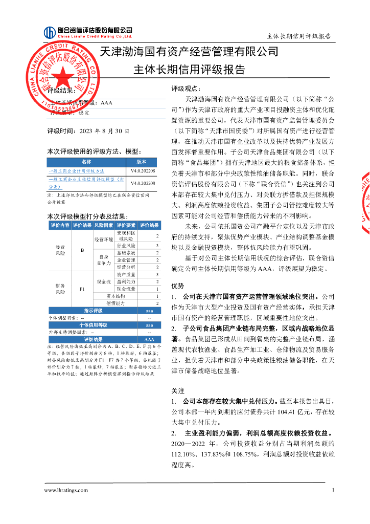 联合资信:天津渤海国有资产经营管理有限公司主体长期信用评级报告.pdf