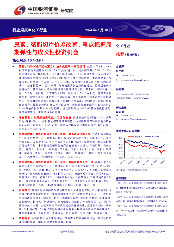 中国银河:行业周报●化工行业:尿素、聚酯切片价差改善,重点把握周期弹性与成长性投资机会.pdf