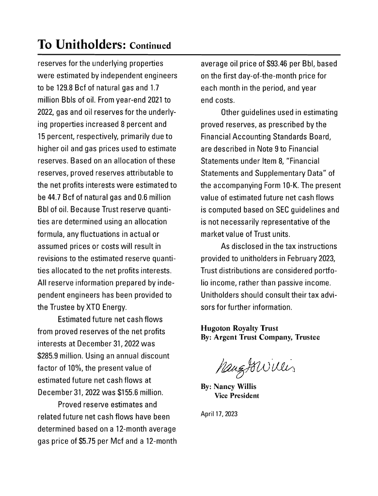 Hugoton Royalty Trust(HGT)2022财年年度报告(英文版).pdf