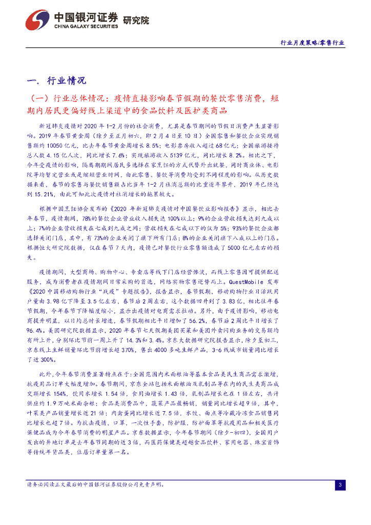 中国银河:零售行业月度策略:疫情短期影响整体零售消费,维持推荐抗冲击的必需超市渠道.pdf