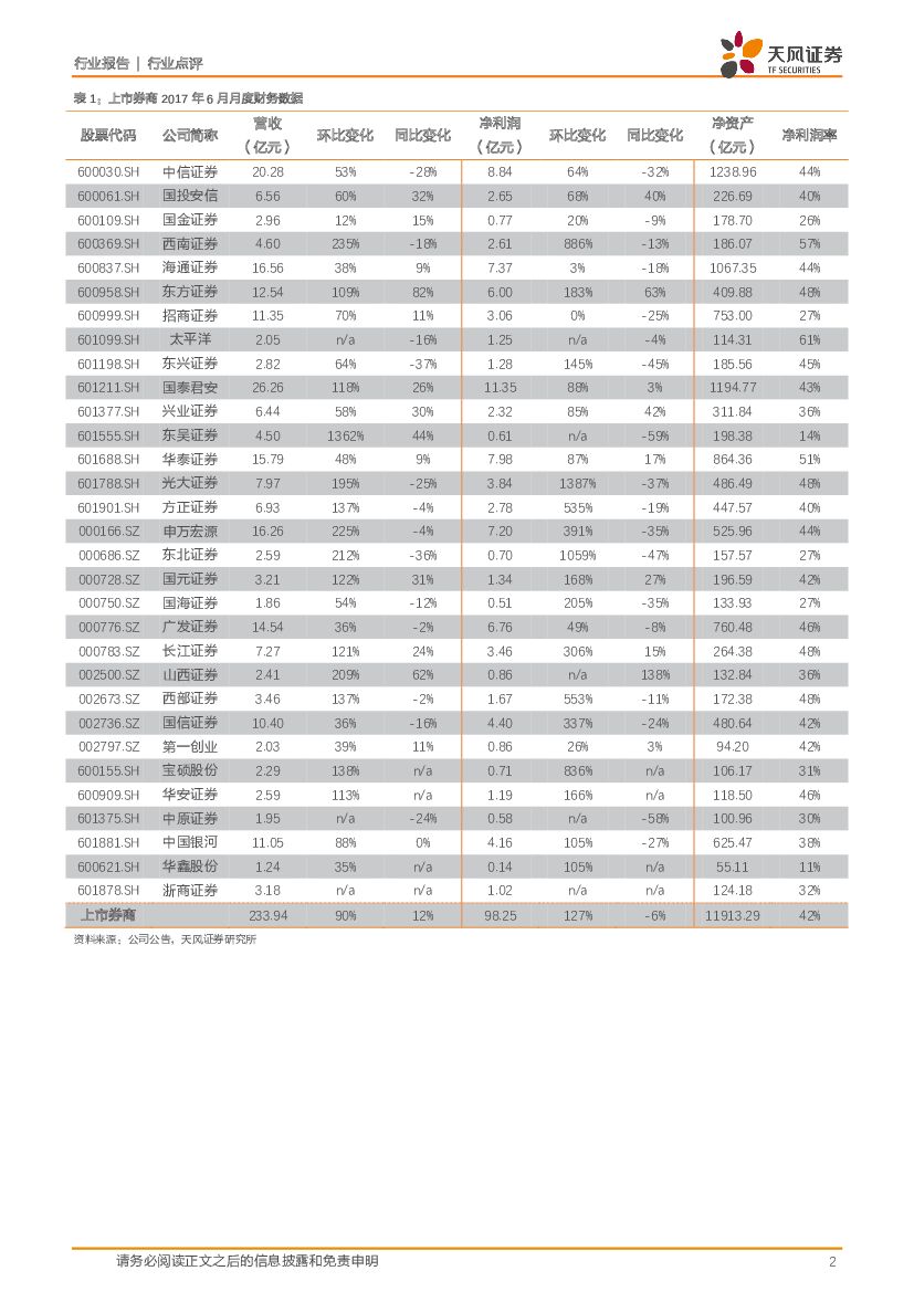 天风证券:证券行业六月财务数据点评:月度业绩环比强势,同比承压;七月继续看多券商.pdf