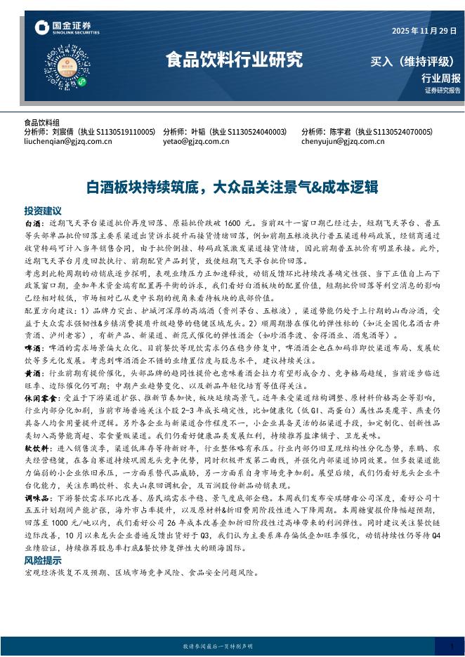 国金证券:食品饮料行业周报:白酒板块持续筑底,大众品关注景气&成本逻辑.pdf