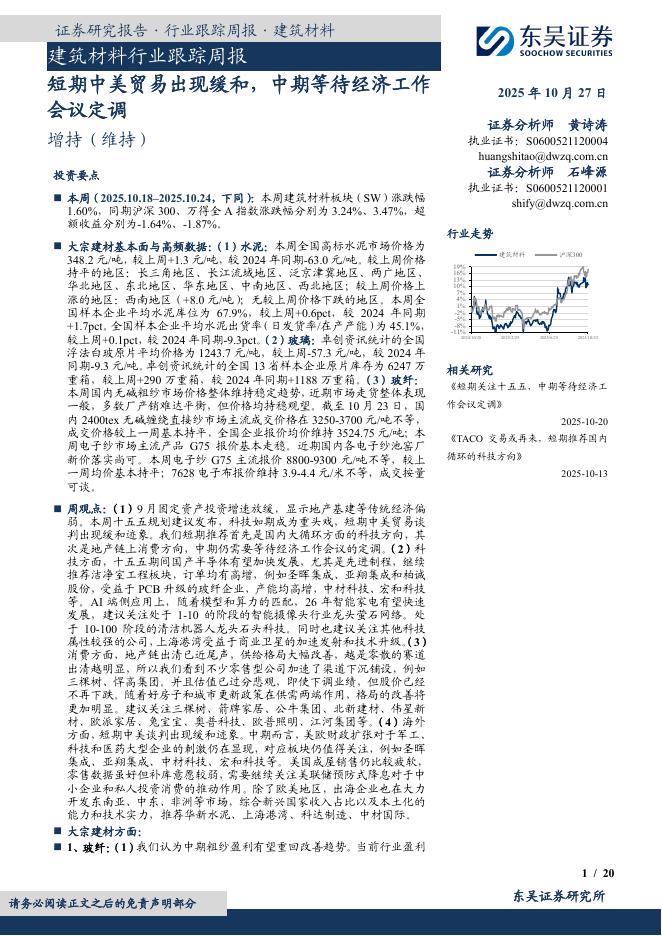 东吴证券:建筑材料行业跟踪周报:短期中美贸易出现缓和,中期等待经济工作会议定调.pdf