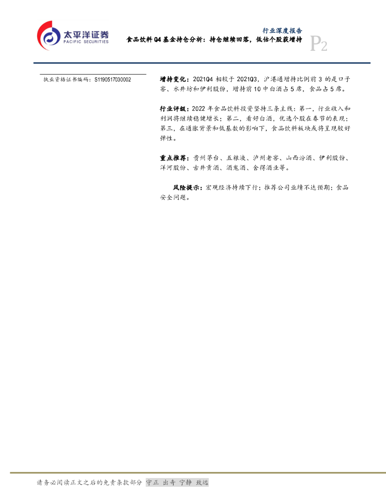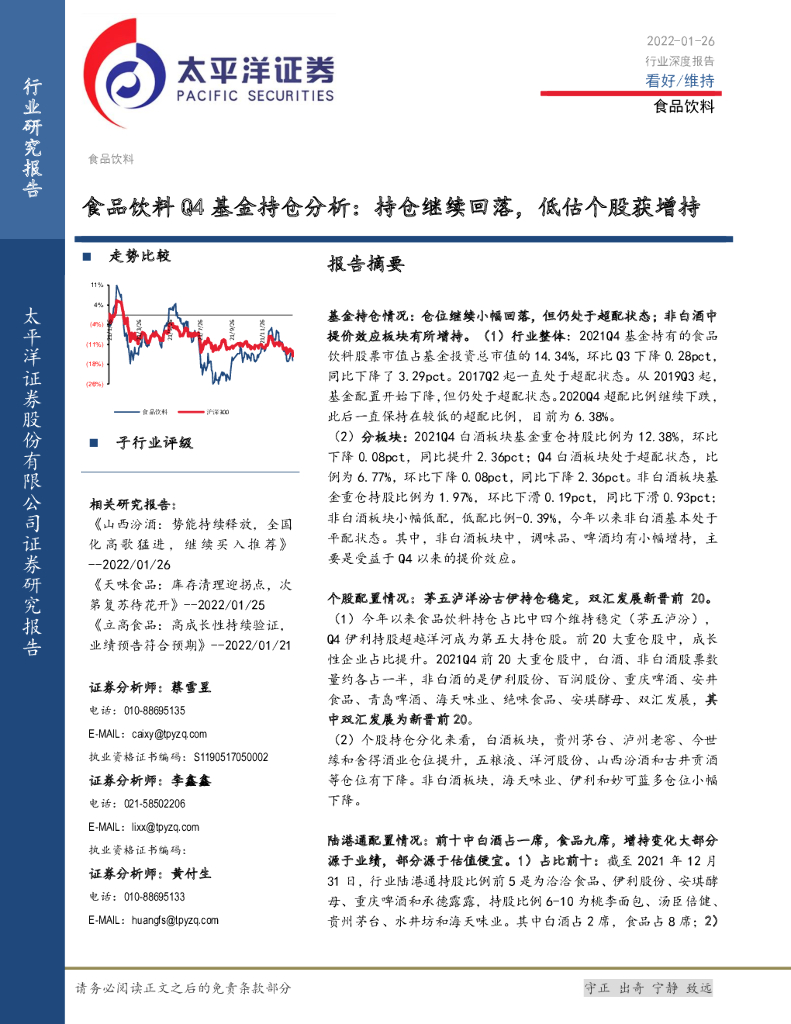 太平洋证券:食品饮料Q4基金持仓分析:持仓继续回落,低估个股获增持.pdf