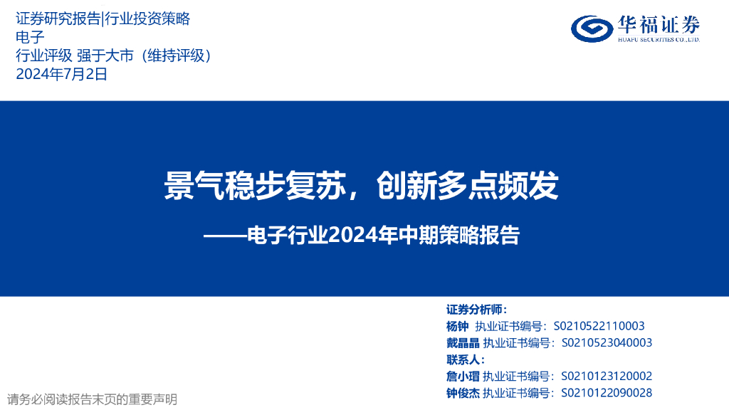 华福证券:电子行业2024年中期策略报告:景气稳步复苏,创新多点频发.pdf