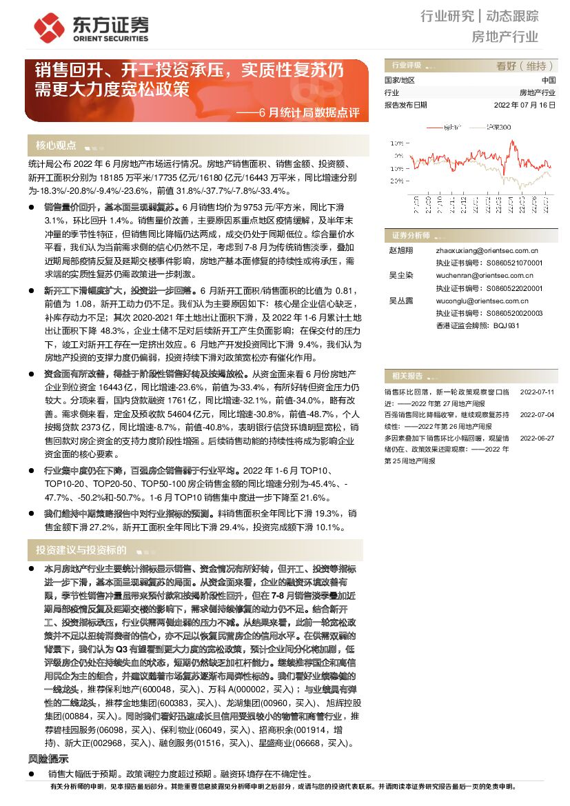 东方证券:房地产行业:6月统计局数据点评:销售回升、开工投资承压,实质性复苏仍需更大力度宽松政策.pdf