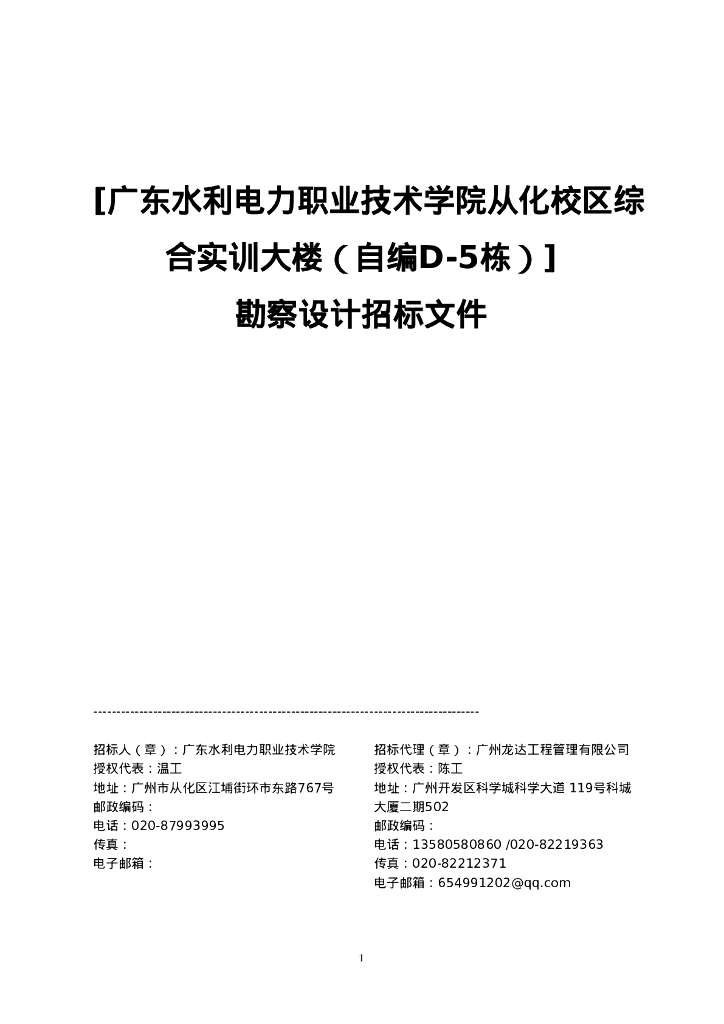 [广东水利电力职业技术学院从化校区综合实训大楼(自编D-5栋)] 勘察设计招标文件.doc