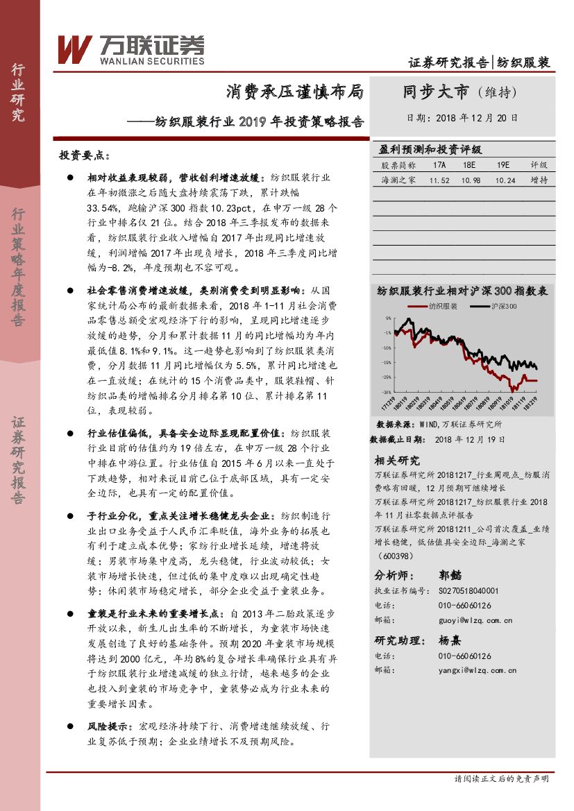 万联证券:纺织服装行业2019年投资策略报告:消费承压谨慎布局.pdf