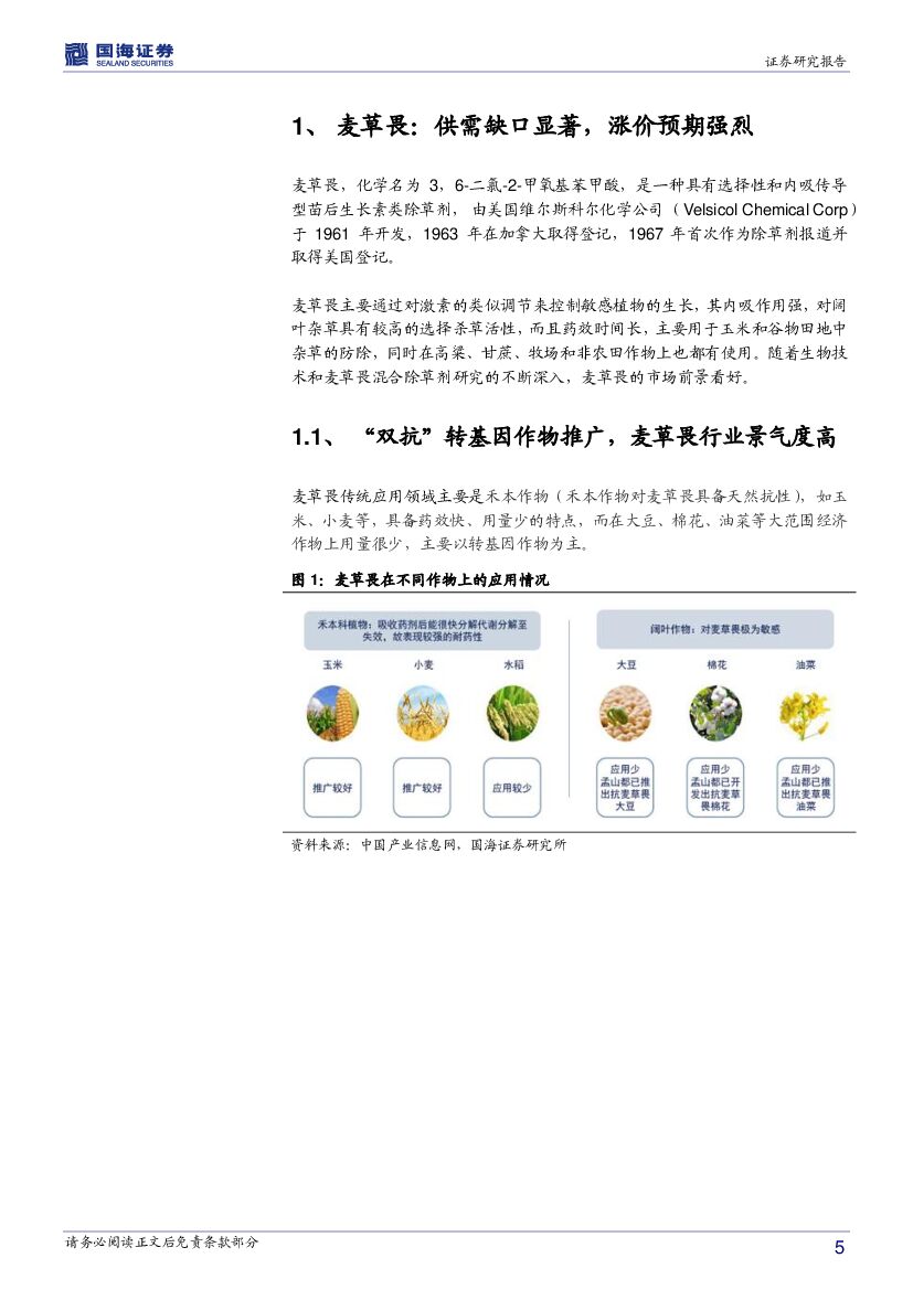 国海证券:化工行业深度报告:“双抗”转基因农作物快速推广,麦草畏行业景气周期来临.pdf