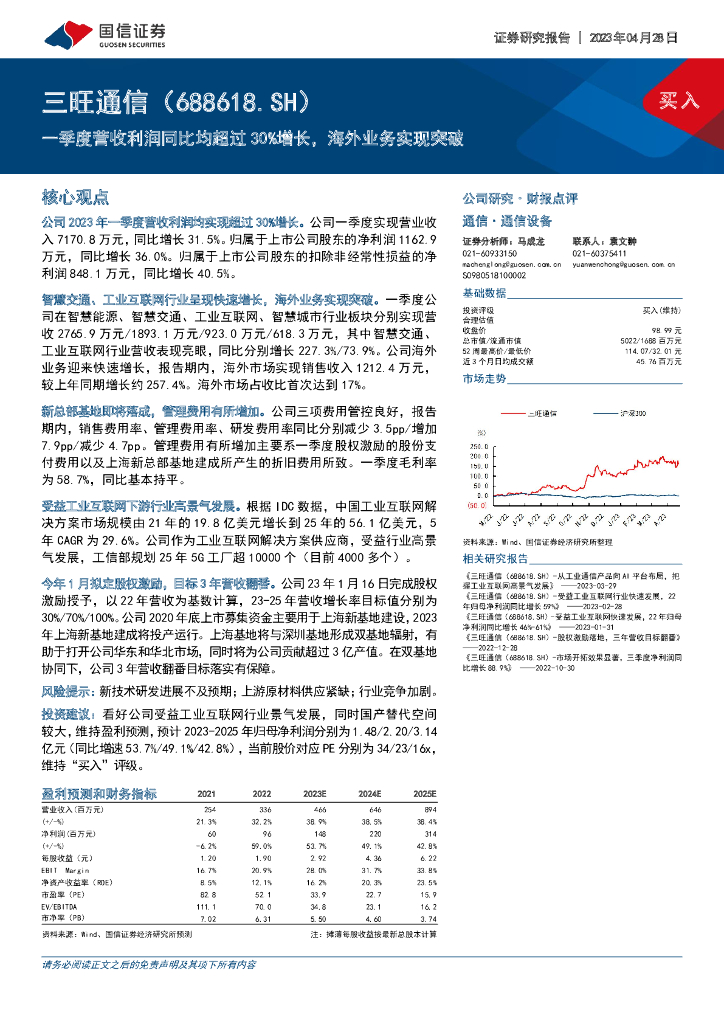 国信证券:三旺通信(688618)-一季度营收利润同比均超过30%增长,海外业务实现突破.pdf
