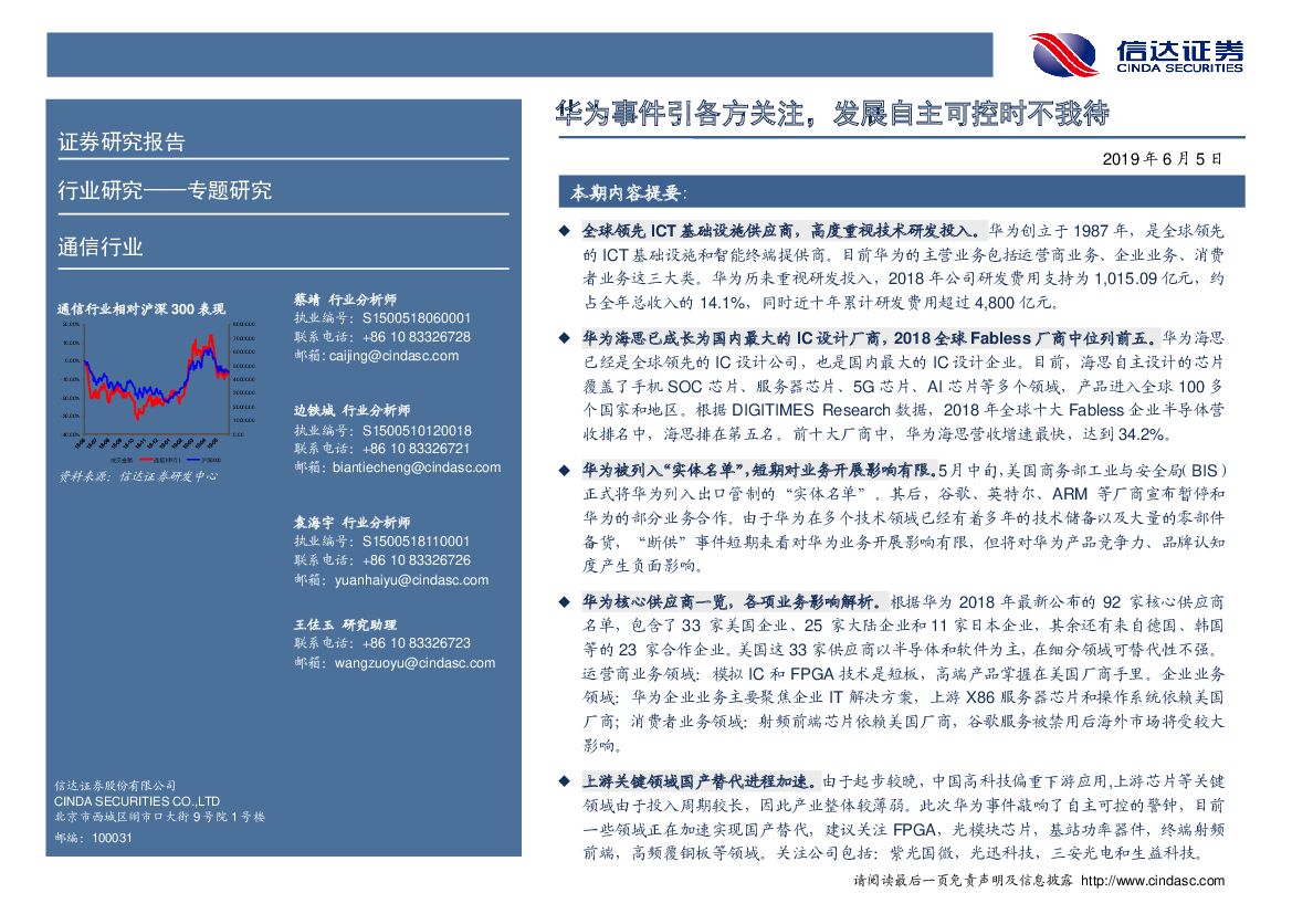 信达证券:通信行业专题研究:华为事件引各方关注,发展自主可控时不我待.pdf
