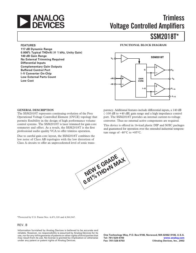ANALOG DEVICES - SSM2018T* 数据手册.pdf