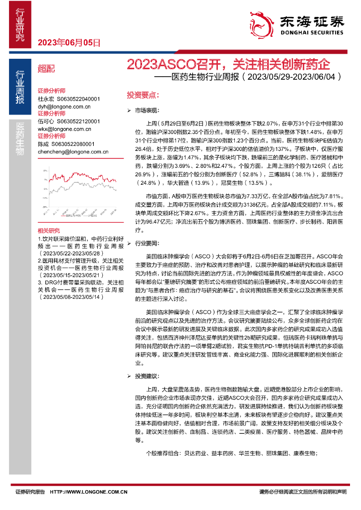 东海证券:医药生物行业周报:2023ASCO召开,关注相关创新药企.pdf