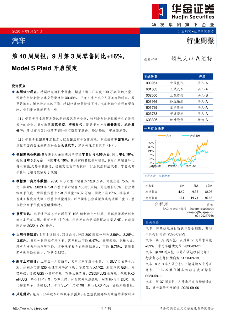 华金证券:汽车行业第40周周报:9月第3周零售同比+16%,Model S Plaid开启预定.pdf