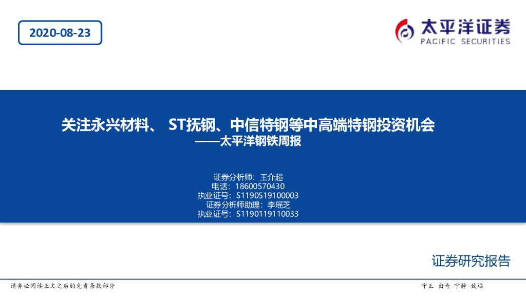 太平洋证券:钢铁周报:关注永兴材料、ST抚钢、中信特钢等中高端特钢投资机会.pdf
