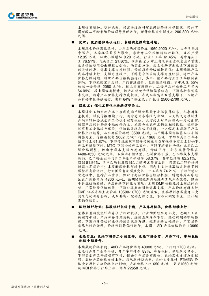 国金证券:基础化工行业研究:化肥春耕需求支撑持续,粘胶氨纶等偏强运行.pdf