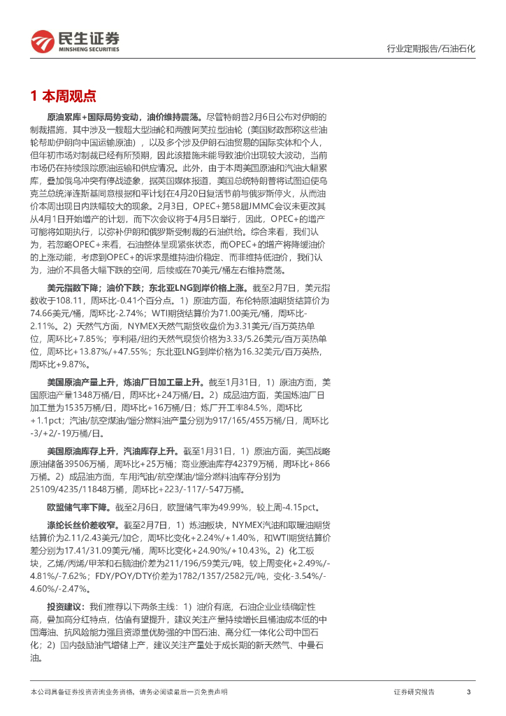民生证券:石化周报:原油累库+国际局势变动,油价维持震荡.pdf