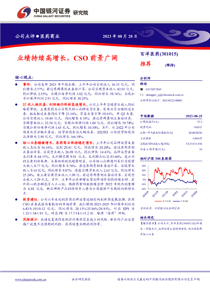 中国银河:百洋医药(301015)-业绩持续高增长,CSO前景广阔.pdf