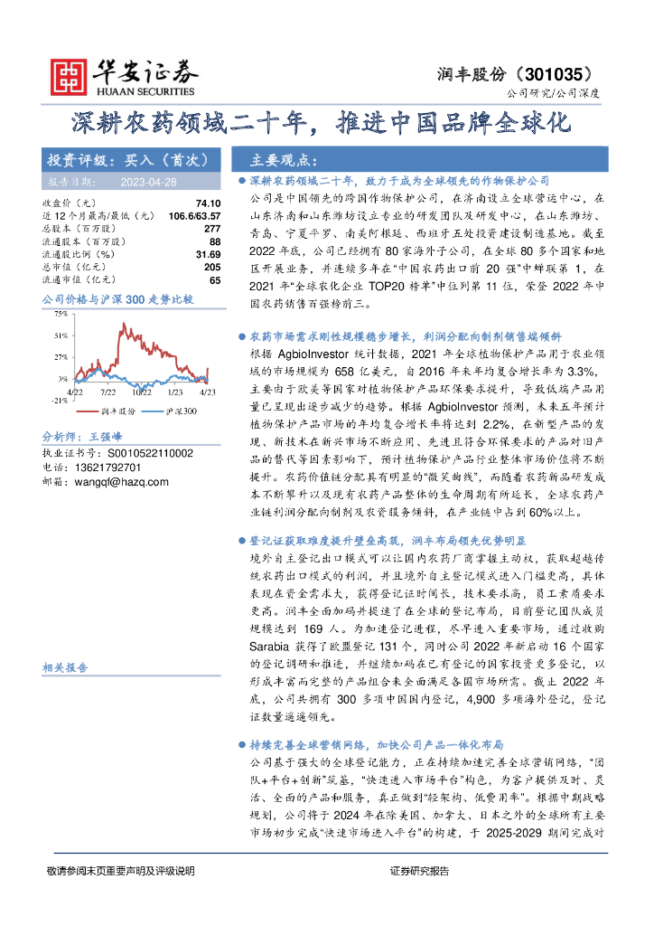华安证券:润丰股份(301035)-深耕农药领域二十年,推进中国品牌全球化.pdf