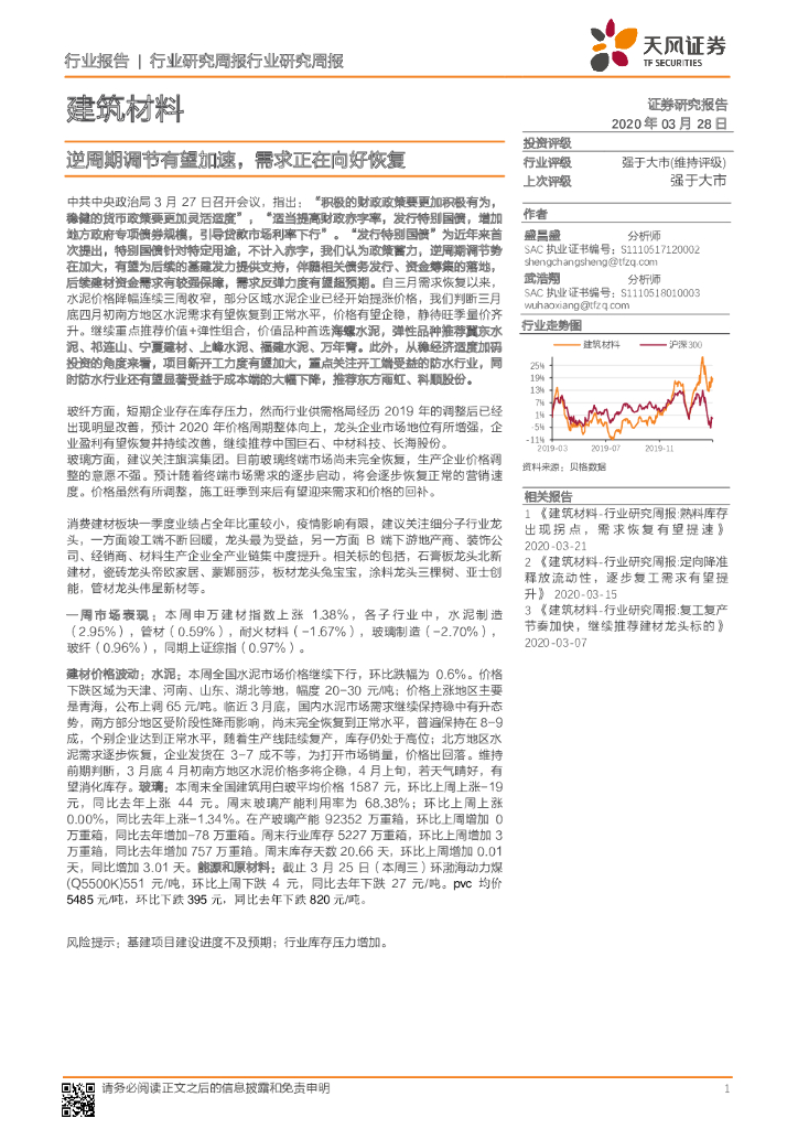 天风证券:建筑材料行业研究周报:逆周期调节有望加速,需求正在向好恢复.pdf