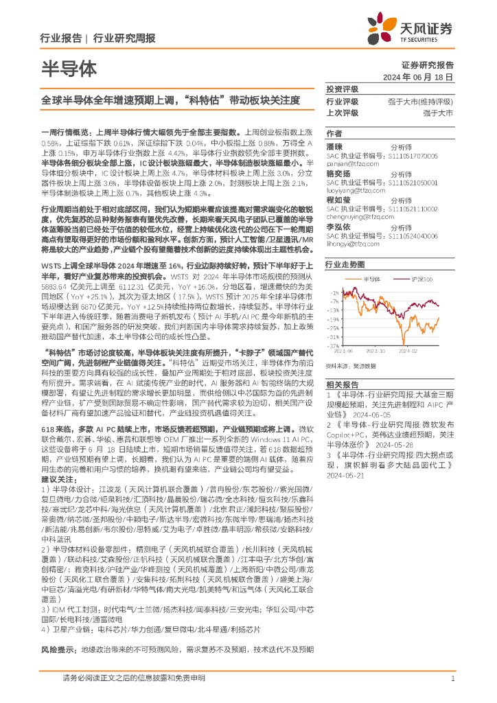 天风证券:半导体行业研究周报:全球半导体全年增速预期上调,“科特估”带动板块关注度.pdf