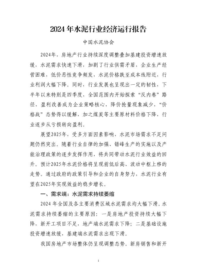 中国水泥协会:2024年水泥行业经济运行报告.pdf
